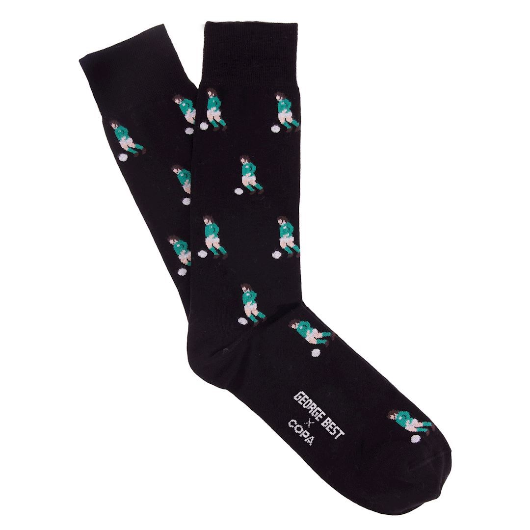 De George Best Sokken Box Set brengen een originele ode aan onze prachtige voetbalcultuur en dat voor een mooie zachte prijs ook. De sokken zijn gemaakt van een fijne mix van katoen, nylon en lycra en hebben een lengte tot halverwege de kuit.