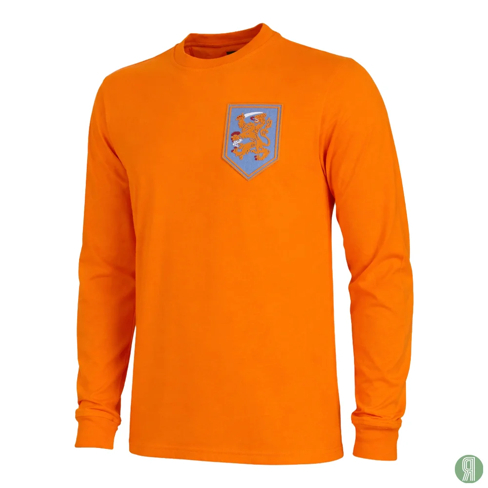 Dit Nederland 1966 Retro Voetbalshirt is gemaakt door COPA Football in officiële samenwerking met de KNVB. Dit shirt werd gedragen door het Nederlands elftal aan het eind van de jaren ’60, toen een piepjonge Johan Cruijff tijdens zijn tweede interland uit het veld werd gestuurd. Ook daarin was Cruijffie ook weer toonaangevend, want dit was tot dan nog nooit een speler van Oranje gebeurd.