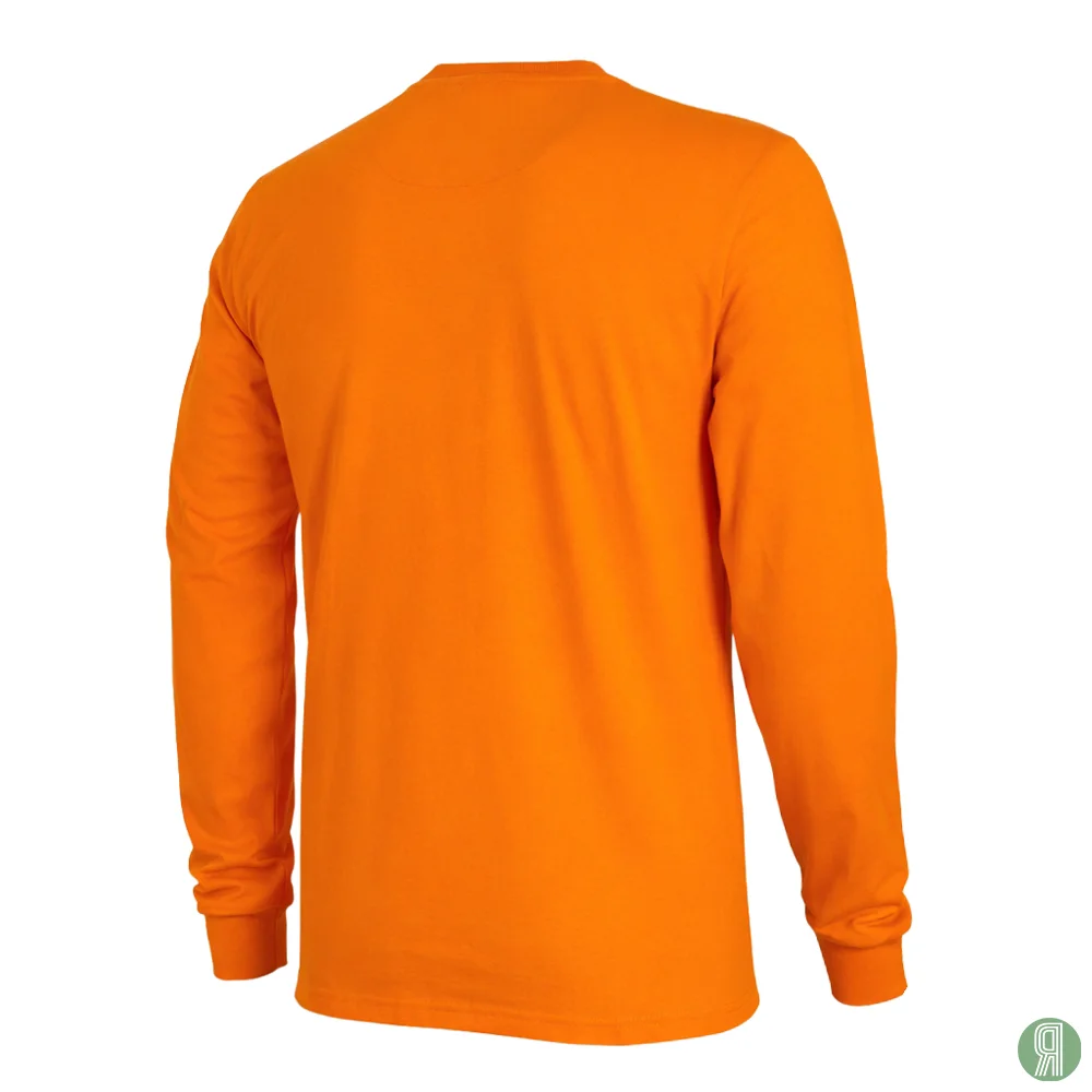 Het shirt heeft lange mouwen en een ronde hals, op de linkerborst is het oude logo van Oranje genaaid. Het is gemaakt van de beste kwaliteit textiel. De pasvorm is normaal.