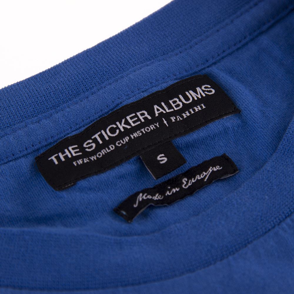 Het Panini WK 1978 Argentinië T-shirt toont een afbeelding van het Panini sticker verzamelalbum van dit historische WK. Het T-shirt heeft korte mouwen en is gefabriceerd in Europa en gemaakt van de beste kwaliteit textiel.